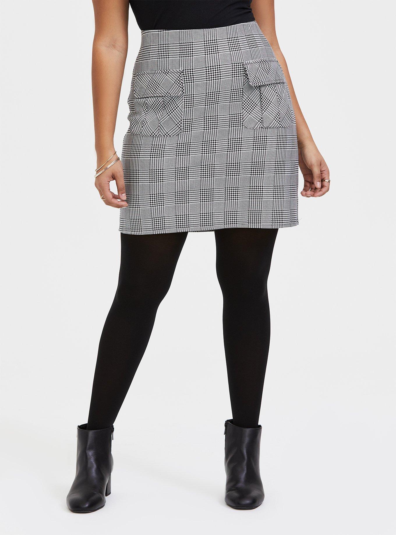 Product Name: Knee length black and white houndstooth skirt 2025