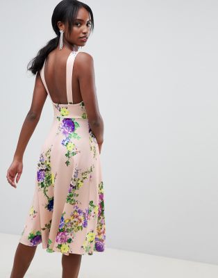 Product Name: Asos design square neck 3d floral lace midi prom dress 2025